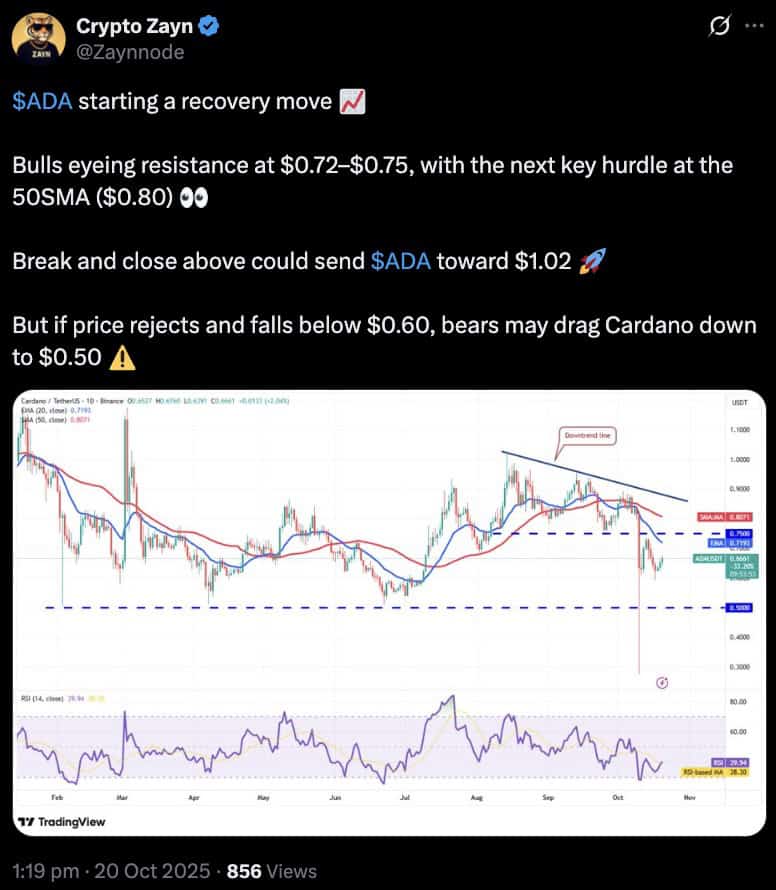 Аналитик Crypto Zayn отмечает, что решительный пробой выше диапазона $0.75-$0.80 может спровоцировать ралли до $1.02. Это будет зеркальным отражением его движения в августе — или галлюцинацией, вызванной слишком долгим пребыванием перед экраном. 🎩💸